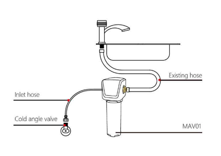 Our system is compatible with standard kitchen sinks. It includes an inlet braided hose for direct connection to